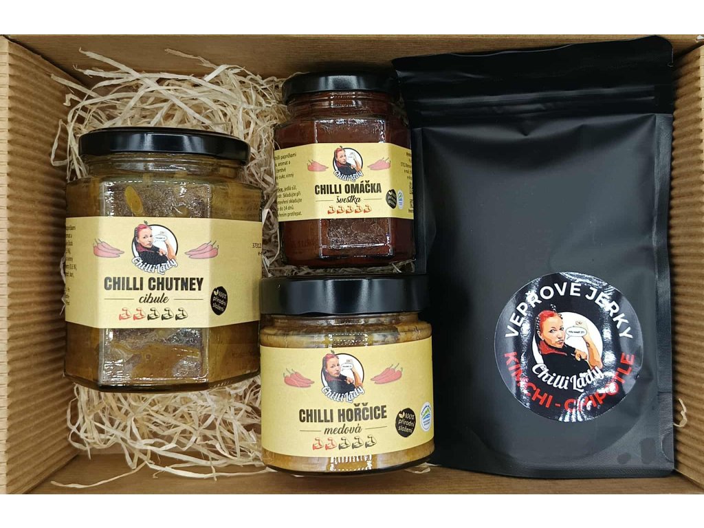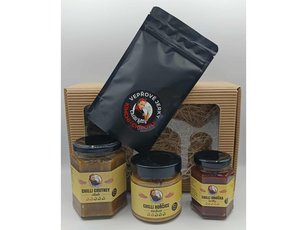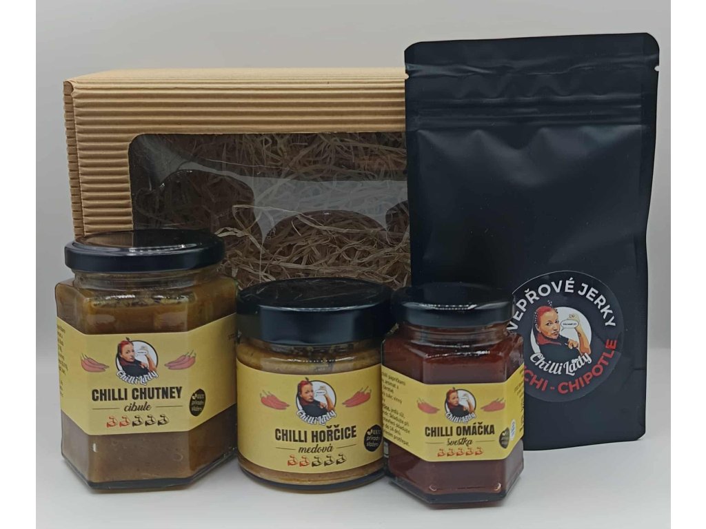 Dárkový set, který potěší každého chlapa, co si rád pochutná. Univerzální výběr výrazných chutí pro domácí pohodu, grilování i rychlý pikantní snack. Vše vyrobeno poctivě v Jižních Čechách značkou Chilli Lady.